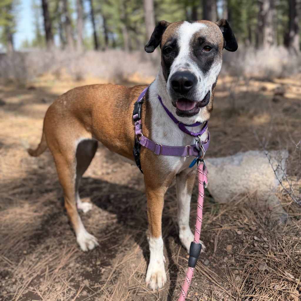At about 60 pounds, Jasmine has a calm, loving nature and thrives in peaceful environments. While she may be a little shy when meeting new people (at first), it doesn’t take long for her warm personality to blossom, especially with a bit of encouragement (and maybe a snowy play session or two). She absolutely loves the snow and lights up when she gets the chance to romp around in it.