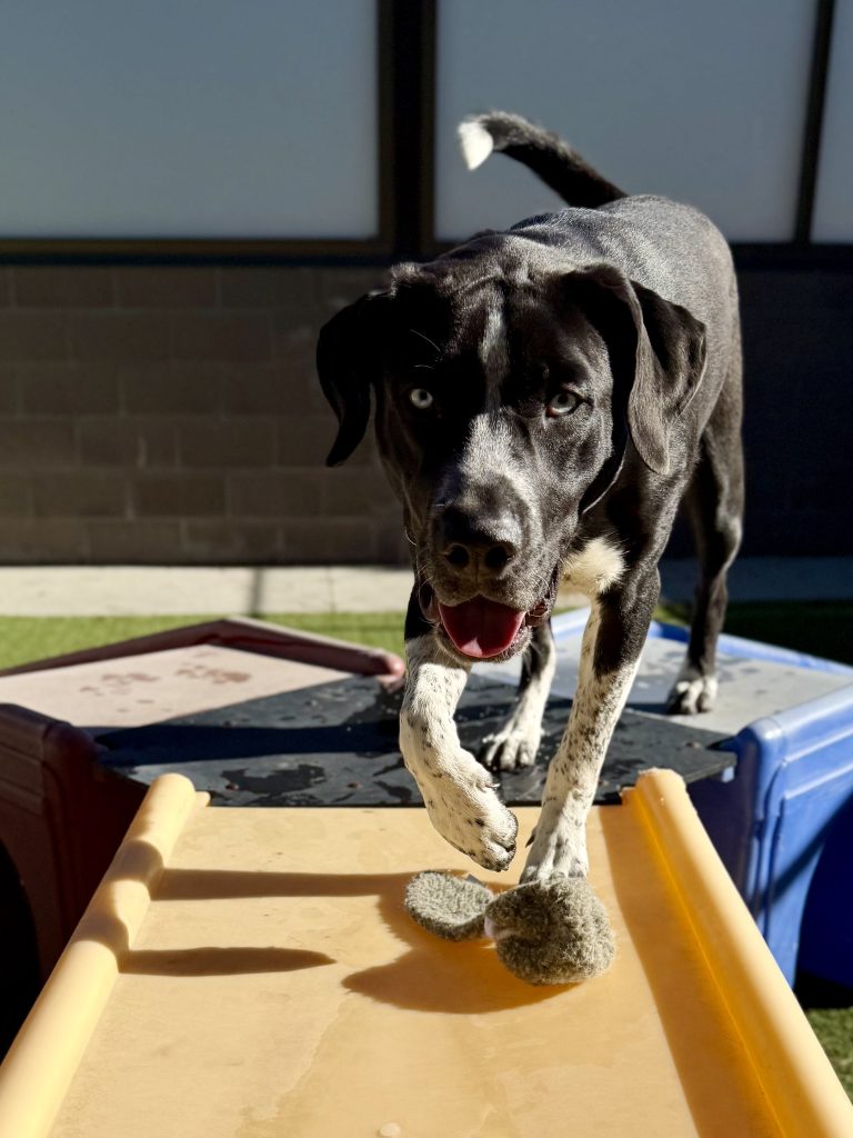 This big-hearted pup is playful, goofy, and absolutely bursting with personality. He loves chasing toys, exploring new places, and flopping over for belly rubs like it’s his full-time job. With other dogs, he’s a total charmer, wagging his tail like a helicopter and immediately offering up a sweet, submissive belly display as if to say, “Hello, I come in peace…and wiggles.”