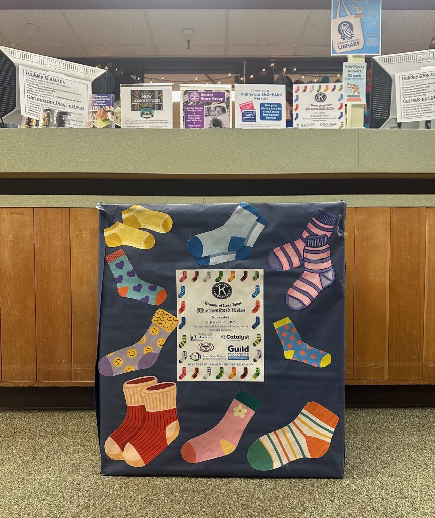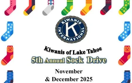 SOUTH LAKE TAHOE, Calif. – Throughout December, the Kiwanis Club of Lake Tahoe is holding a sock drive for its 5th year in a row, with drop boxes located at South Tahoe Refuse, El Dorado County Library, South Tahoe Public Utility District, Guild Mortgage Realtors, and two new sponsor locations at Ernie’s Coffee Shop and BMO Bank.