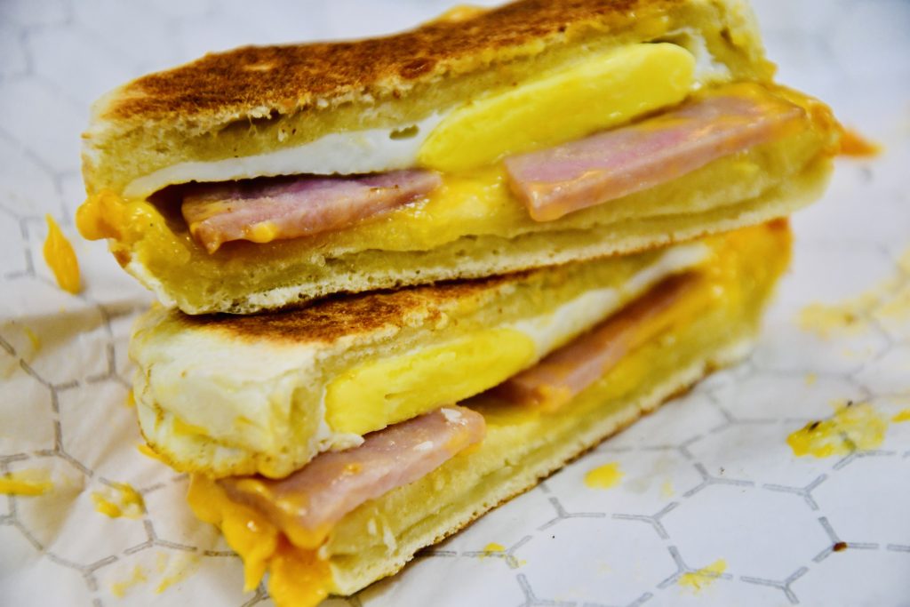I’m likely not mentioning any ingredients you don’t already know but hear me out on this. The muffins are made on-site daily with fresh dough in their muffin maker, which produces textbook flavor and form. Hearty slices of ham, perfectly cooked egg, and cheddar cheese are pressed and melted together creating a waterfall of gooiness that pours over the sides.