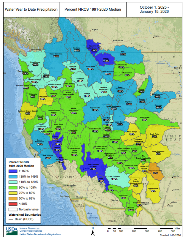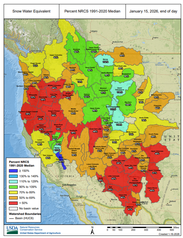 Much of the west hasn’t been so fortunate with the disparity between precipitation and snow continuing.