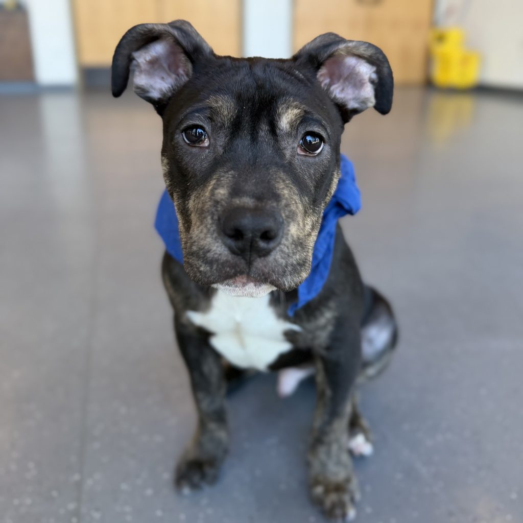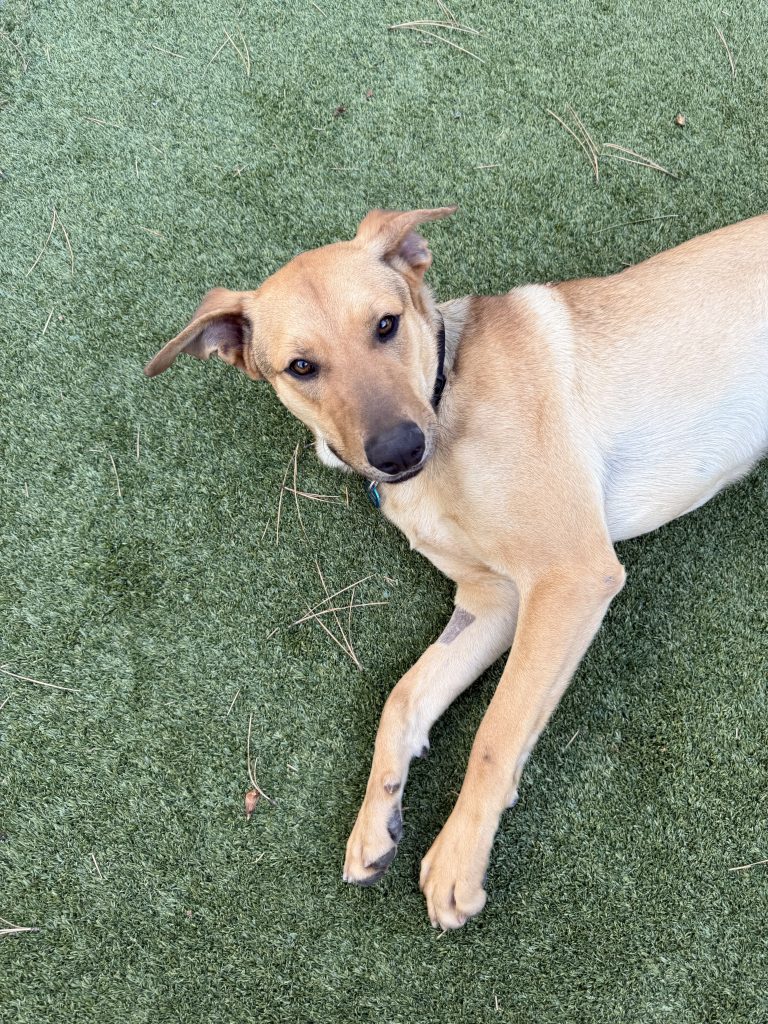 Tate is everything you’d expect from a young dog. He’s playful, curious, and full of life. He absolutely loves being around people and will happily soak up all the attention you can give. Whether he’s greeting you with a wagging tail, sticking close by your side, or trying to convince you it’s time for another adventure, Tate’s happy personality is truly contagious.