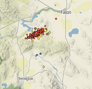 RENO, Nev. — The Nevada Seismological Laboratory (NSL) recorded a magnitude 5.7 earthquake southeast of Lahontan Reservoir in the Dead Camel Mountains at 6:29 p.m. on Monday, and has been followed by at least 120 aftershocks, of which 17 were over magnitude 3 (as of 8:25 a.m. on Tuesday). The mainshock was located 12.5 miles southeast of Silver Springs and 15 miles southwest of Fallon.